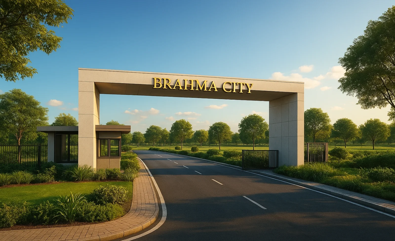 Spread across 15 acres, Brahma City features wide 33-feet internal roads, a central park, solar